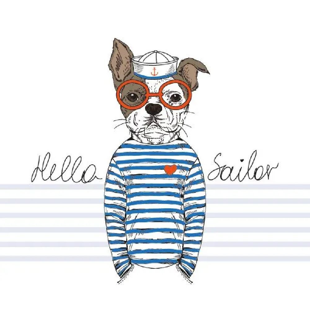 Aртикул 92372DВ нашей компании Вы можете купить плакат "Собака матрос" по цене от 590 руб.