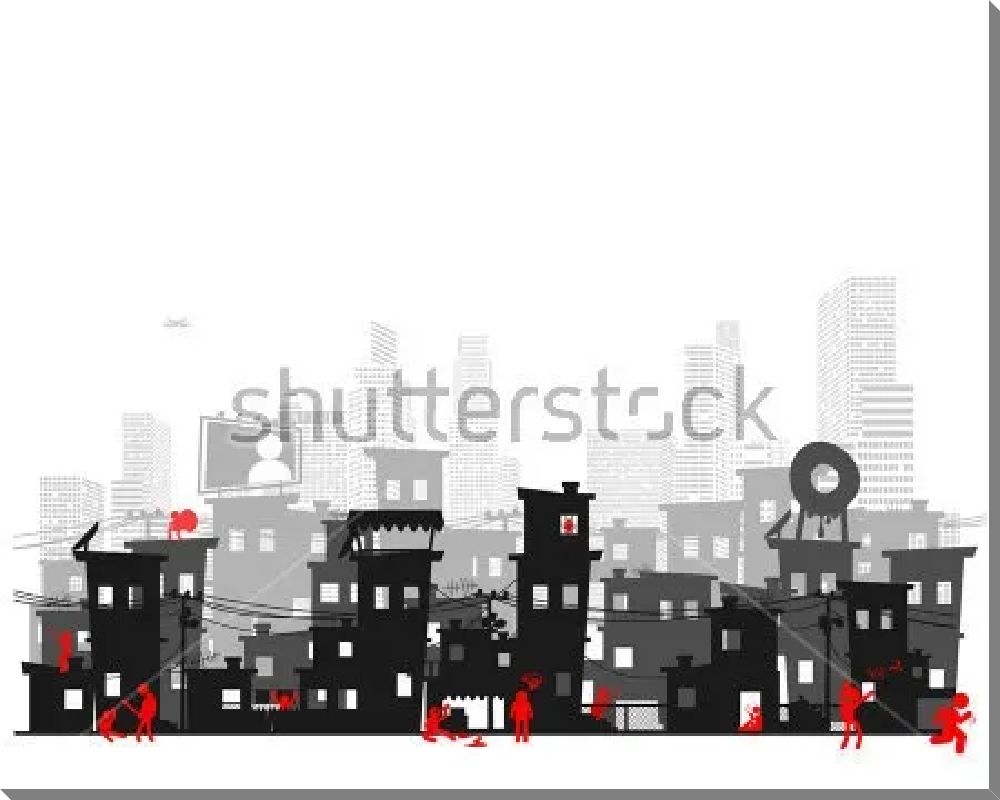 Постер "Контрасты - трущобы на фоне небоскрёбов большого города" станет прекрасным украшением Вашего интерьера и отлично будет смотреться на стене любого помещения: от жилой комнаты или спальни до офиса и коммерческого пространства.