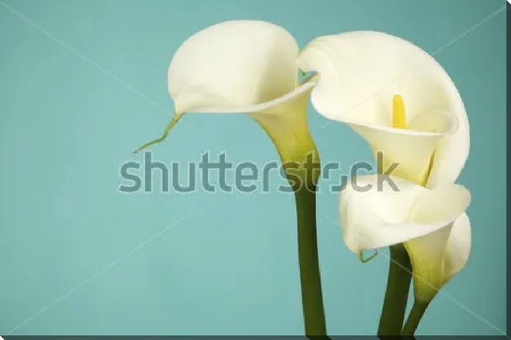Постер "Нежные белые каллы на голубом фоне" станет прекрасным украшением Вашего интерьера и отлично будет смотреться на стене любого помещения: от жилой комнаты или спальни до офиса и коммерческого пространства.