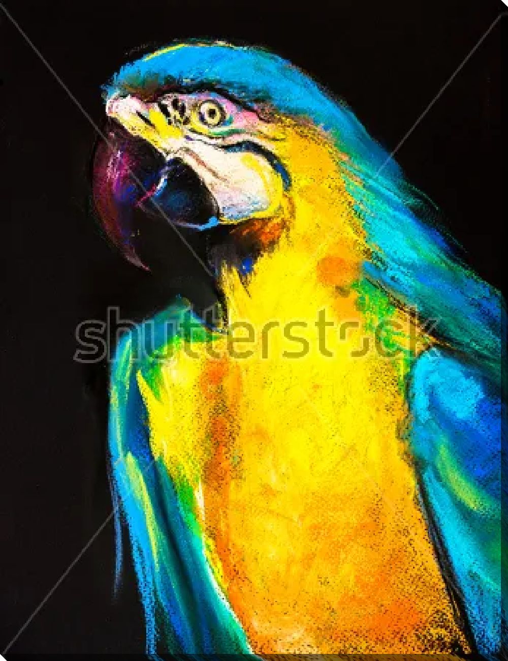Aртикул 111027539133DВ нашей компании Вы можете купить постер "Портрет яркого жёлто-голубого попугая на чёрном фоне" по цене от 590 руб.