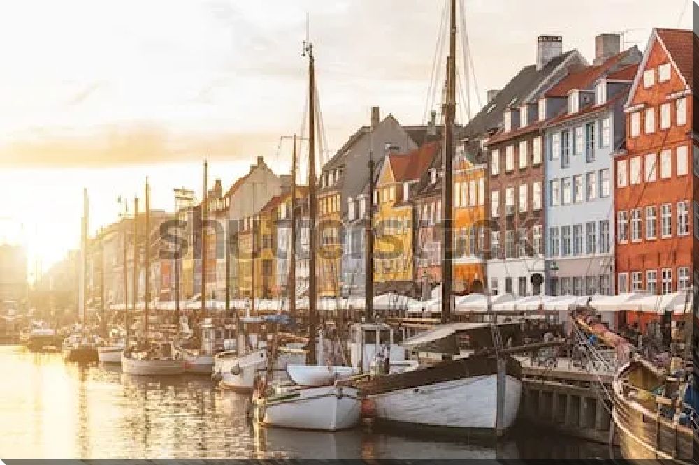 Постер "Набережная с разноцветными домами на набережной Старого города Копенгагена во время заката" станет прекрасным украшением Вашего интерьера и отлично будет смотреться на стене любого помещения: от жилой комнаты или спальни до офиса и коммерческого пространства.