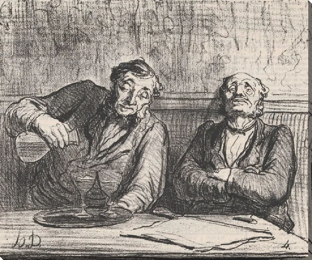 Постер Абсент: первый бокал, шестой бокал из «Китайского Парижа», опубликованный в «Чаривари», 22 декабря 1863 г. Домье Оноре