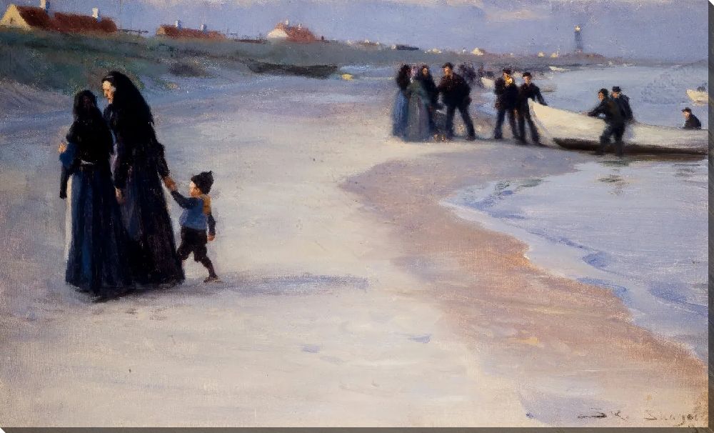 Постер "Белая лодка на пляже. Легкий летний вечер " Кройер Педер Северин станет прекрасным украшением Вашего интерьера и отлично будет смотреться на стене любого помещения: от жилой комнаты или спальни до офиса и коммерческого пространства.