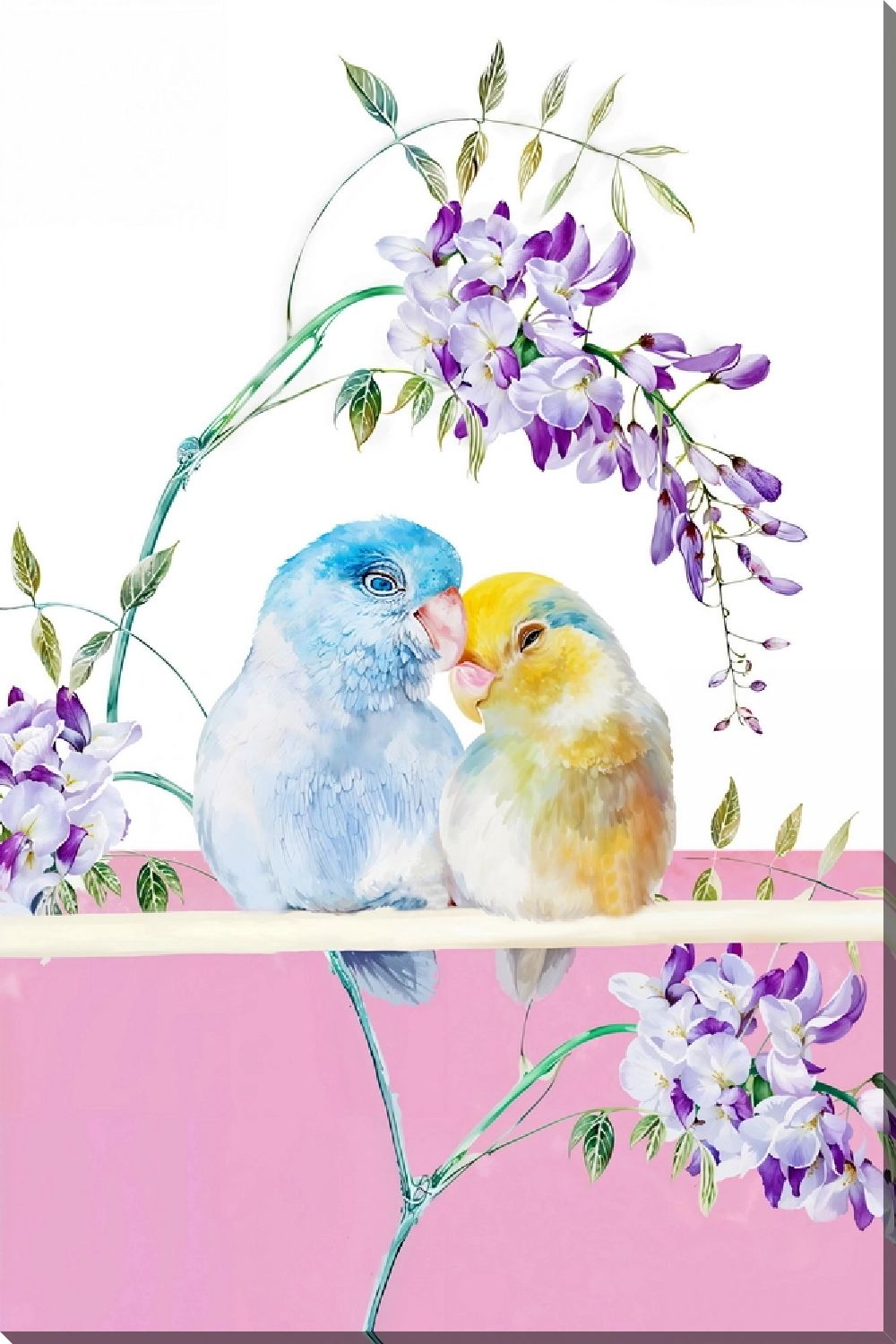 Aртикул 11604DВ нашей компании Вы можете купить постер "Волнистые попугайчики и ирисы" по цене от 590 руб.
