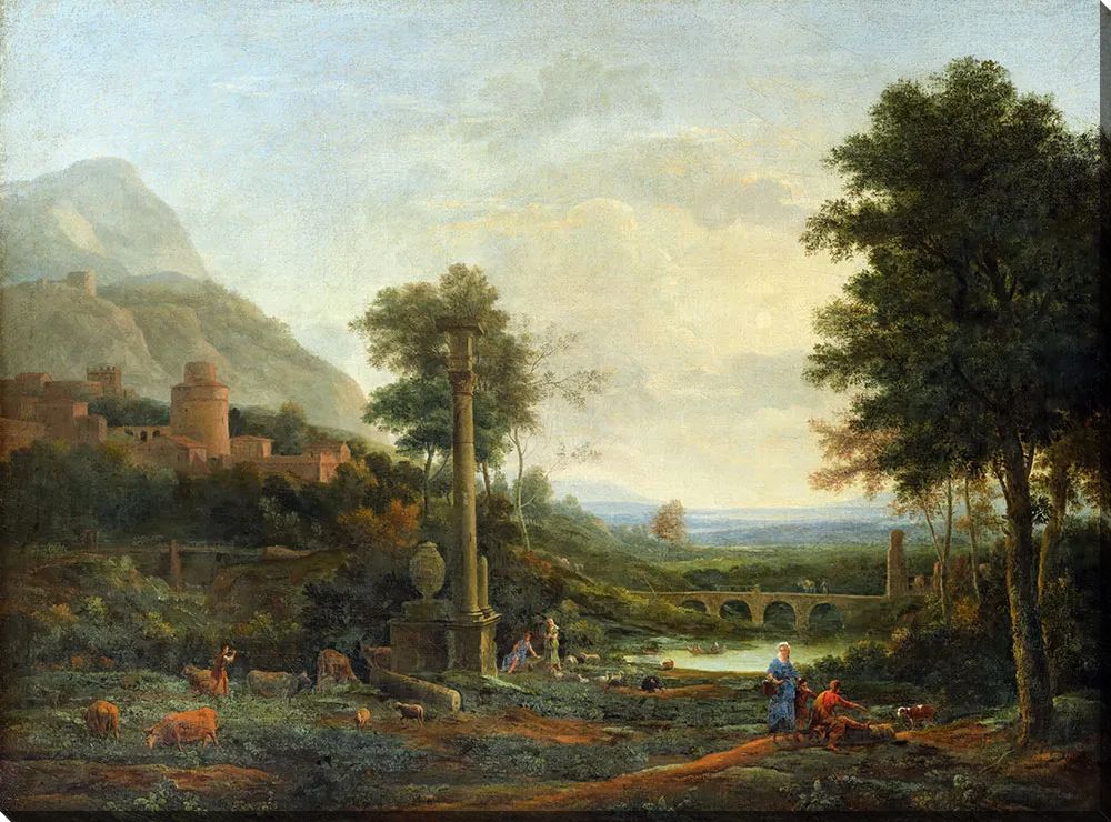 Постер "Пейзаж с колонной и фигурами" Лоррен Клод станет прекрасным украшением Вашего интерьера и отлично будет смотреться на стене любого помещения: от жилой комнаты или спальни до офиса и коммерческого пространства.