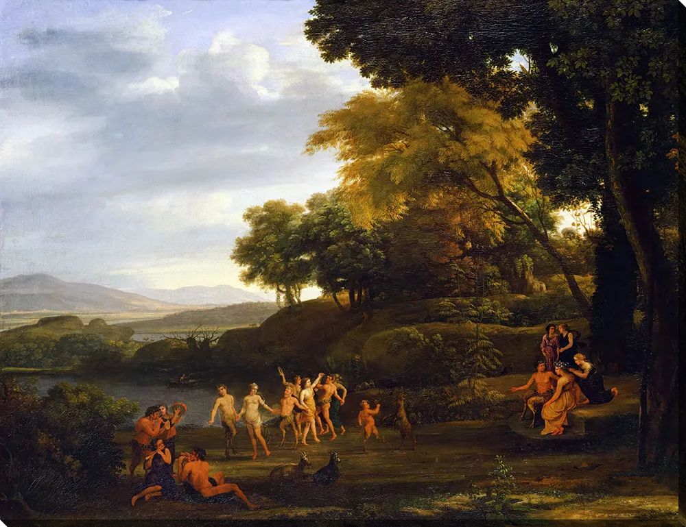 Постер "Пейзаж с танцующими сатирами и нимфами" Лоррен Клод станет прекрасным украшением Вашего интерьера и отлично будет смотреться на стене любого помещения: от жилой комнаты или спальни до офиса и коммерческого пространства.